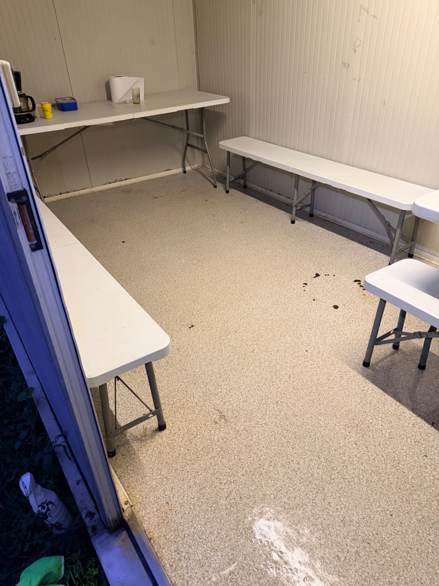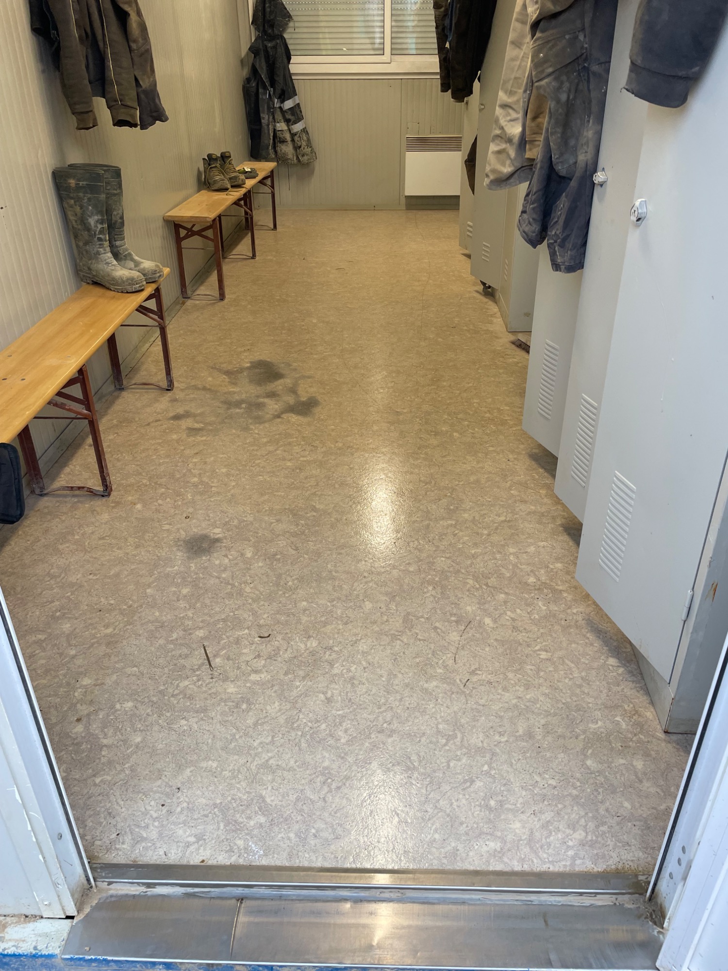 Entretien hebdomadaire d'une base vie de chantier pour une entreprise de maçonnerie locale composée d'une salle de réunion, deux vestiaires, un réfectoire et un bloc sanitaires